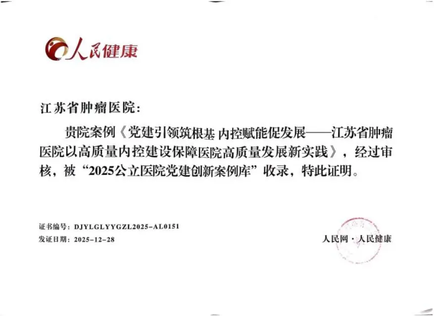 此次入选标志着医院党建与内控深度融合的创新实践获国家级认可。未来,医院将持续探索党建与业务融合新路径,以更高效的管理与严密的防控,为公立医院治理现代化贡献“苏肿方案”,助力健康中国健康江苏建设,更好地守护人民群众全生命周期健康。