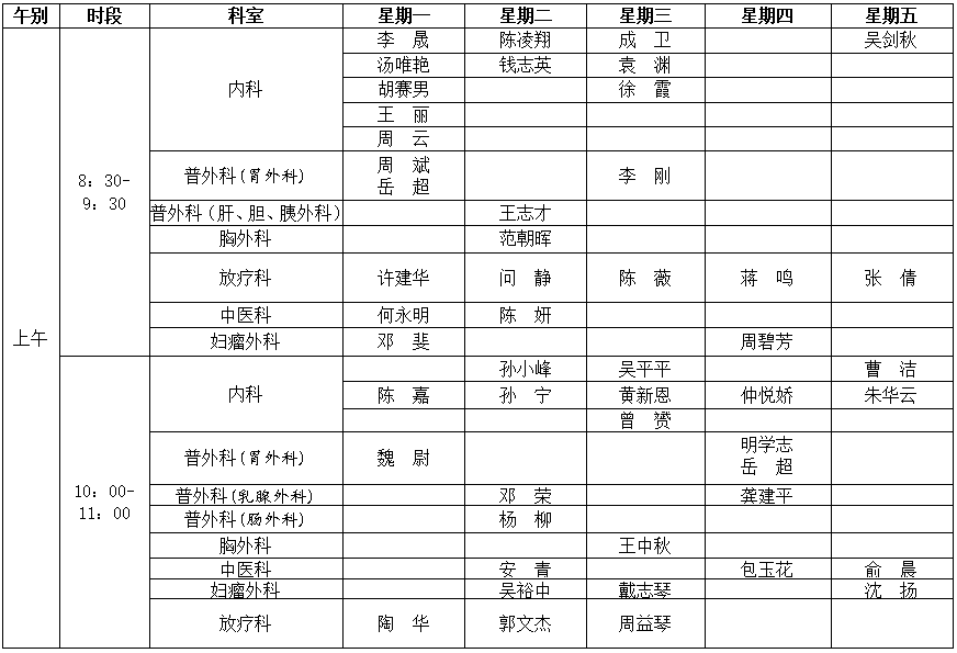 江苏省肿瘤医院互联网医院医生排班(上午)