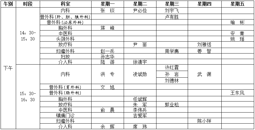 江苏省肿瘤医院互联网医院医生排班(下午)