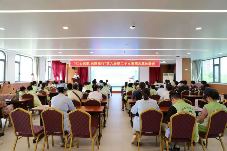8月7日,我院成功举办“仁心起航,医路童行”第六届职工子女暑期志愿体验营活动。45名医院职工子女参与活动,开启了一场意义非凡的医学探索之旅。副院长蒋峰,对外合作处、宣传处、工会等部门负责人出席参加活动。对外合作处副处长、团委书记席昱主持会议。