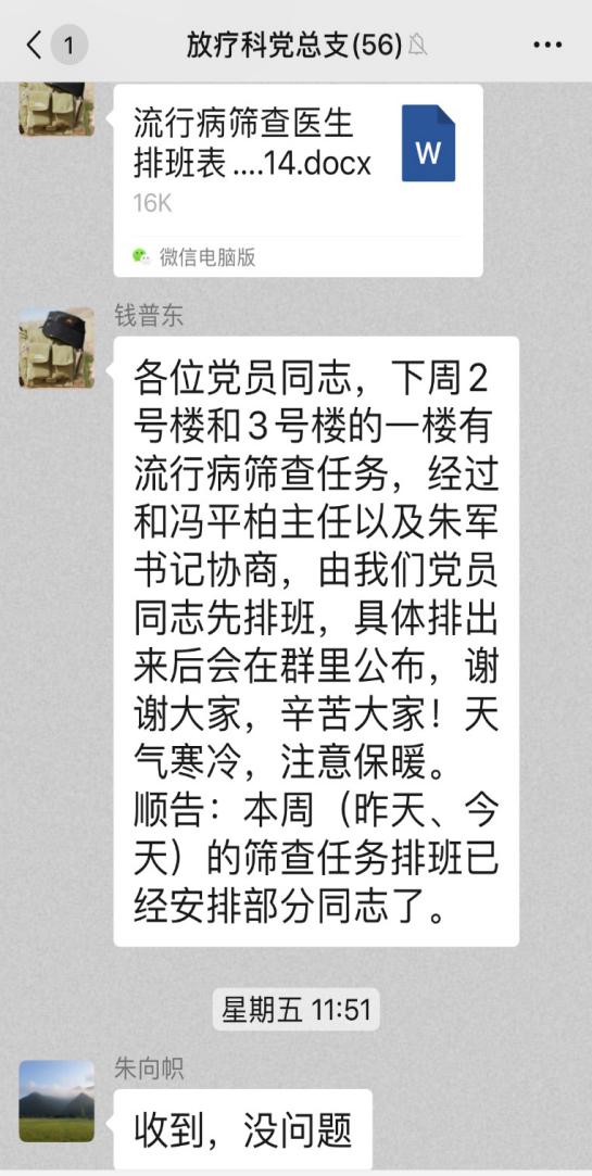 党总支及科室为了缓解门诊及各流行病学筛查岗的工作压力,从党员开始,安排